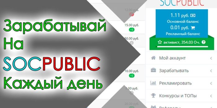 Socpublic.com – популярный сайт активной рекламы (САР), предлагающий множество способов заработка в интернете без специальных навыков. Здесь можно получать деньги за выполнение простых заданий, просмотр рекламы, чтение писем и другие действия.